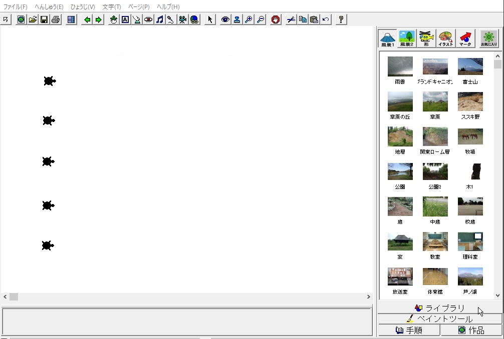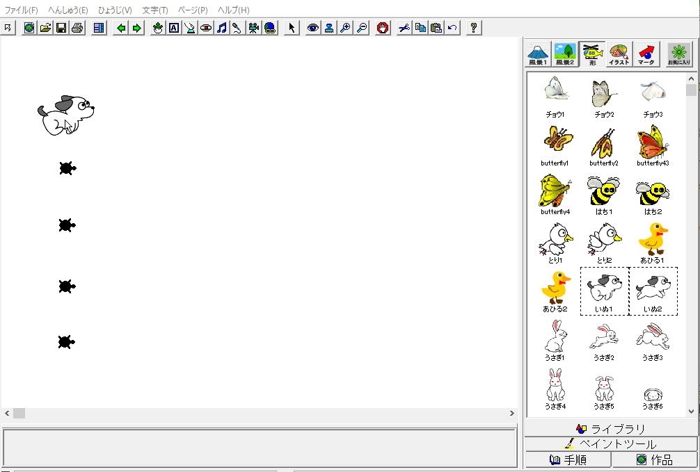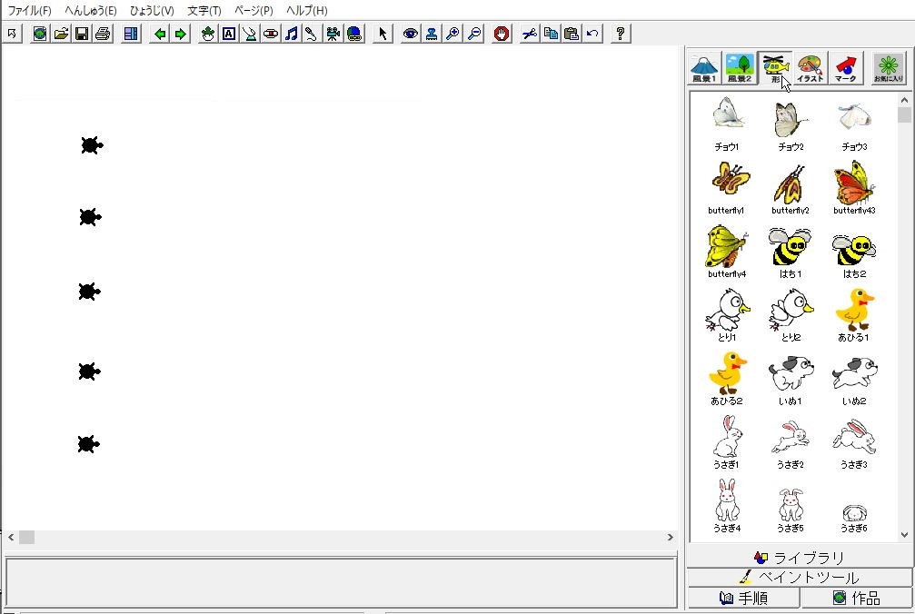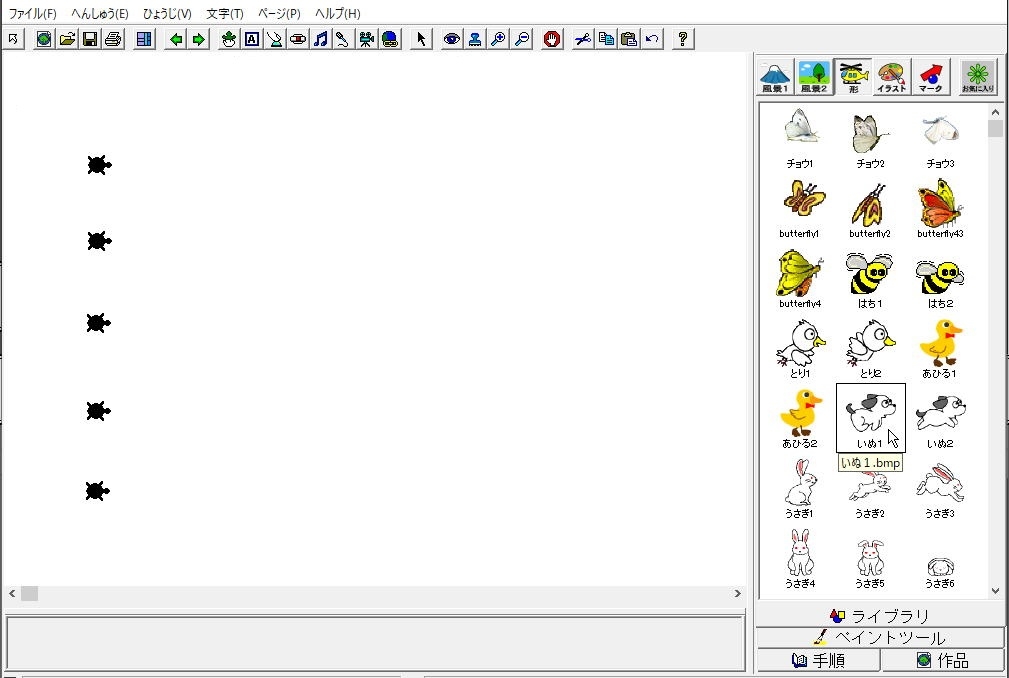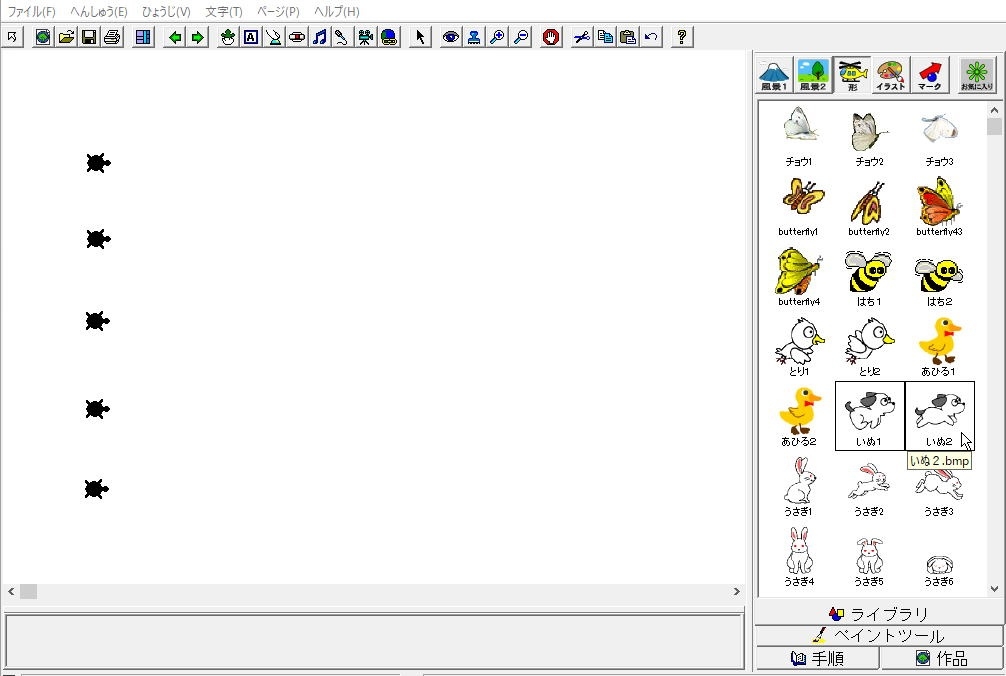 | (5)かめを をひだりくりっくします。 (3)(4)(5)を くりかえします。 |