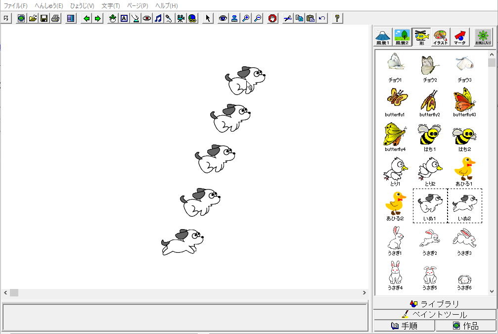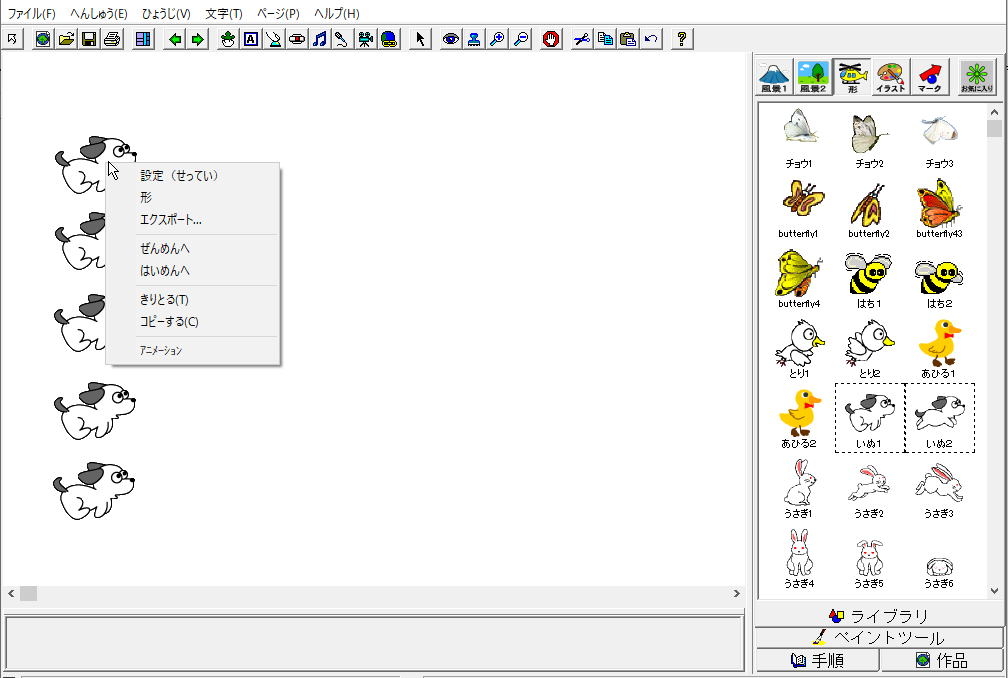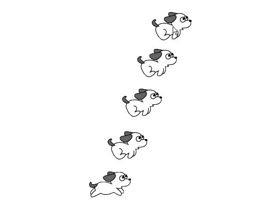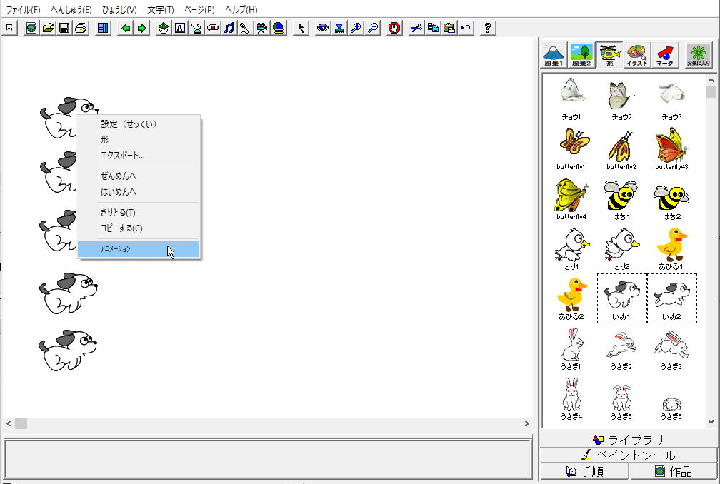| (1)うごいているいぬを ひだりくりっくすると とまります。 とまっているいぬを ひだりくりっくすると うごきます。 |