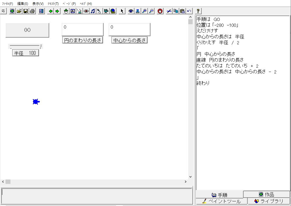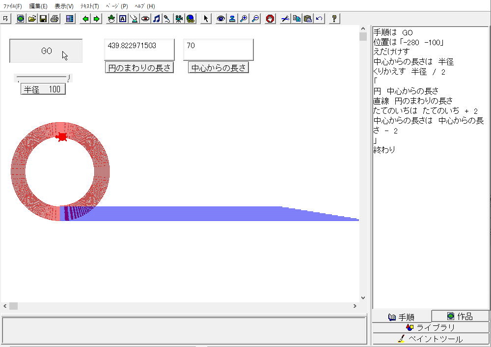 くりかえす半径/2 は、次の「 」の中を 半径/2 の回数だけくりかえします。