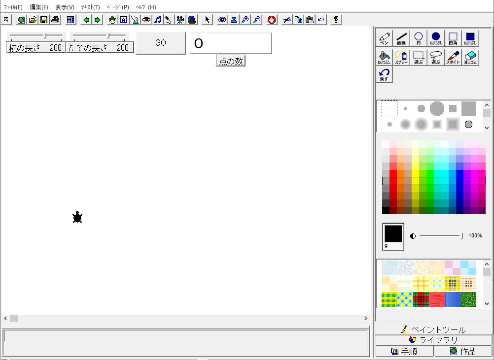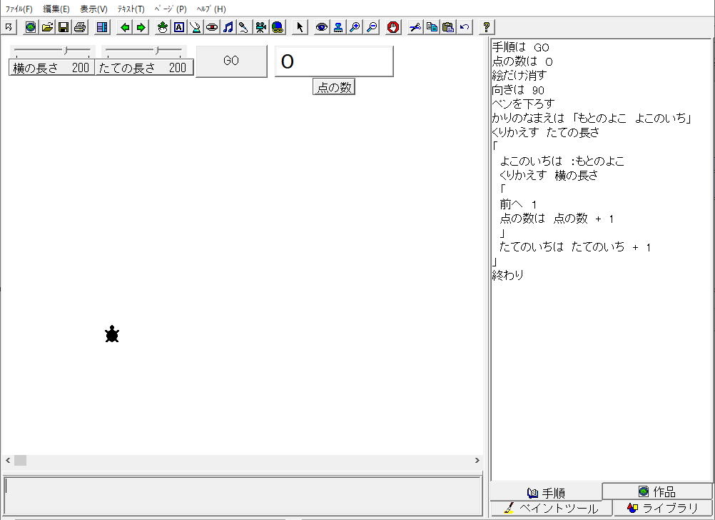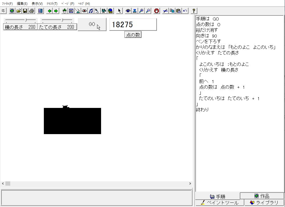 1.もとの四角形の面積を開く 3.手順タブエリアにプログラミング 4.点の数を数える |