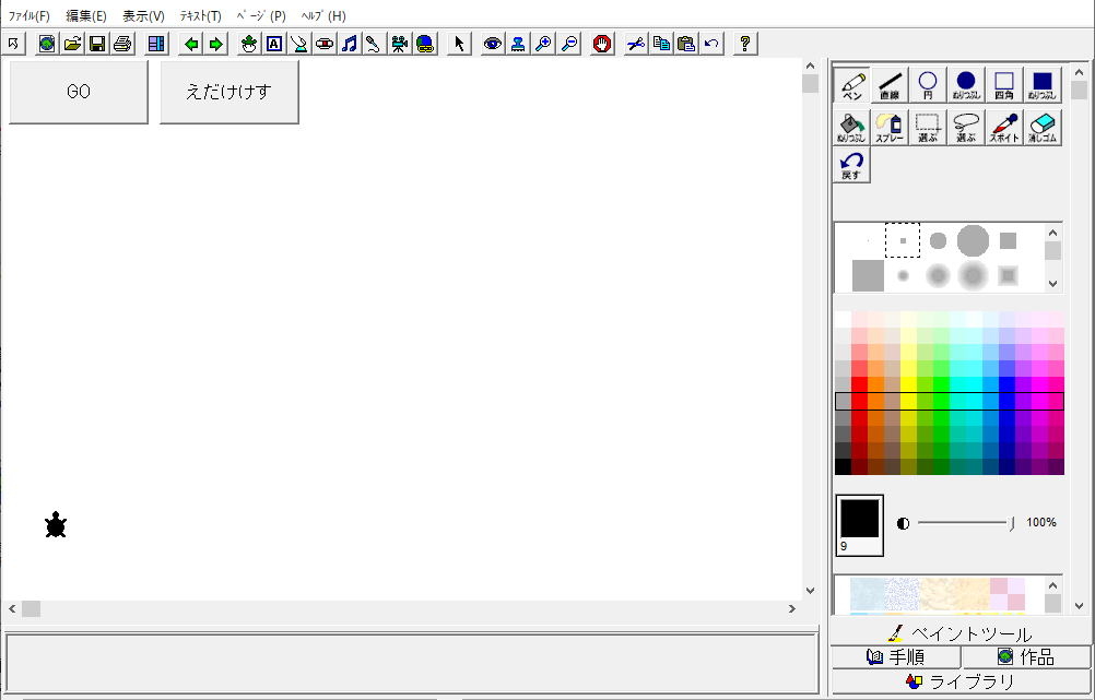 向きは55前へ10ぬる後ろへ10 は、平行四辺形の中で、ぬるを実行して、カメの色でぬります。