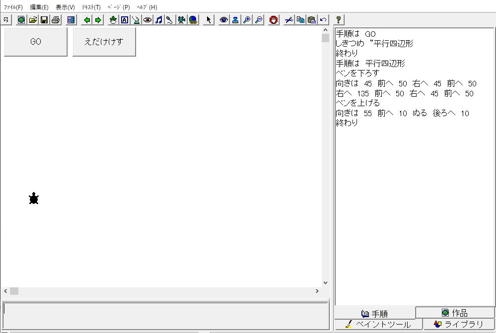 右へ135前へ50右へ45前へ50 は、平行四辺形をかきます。