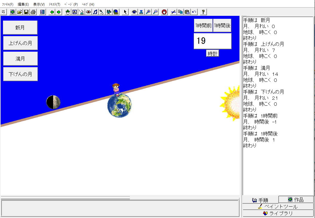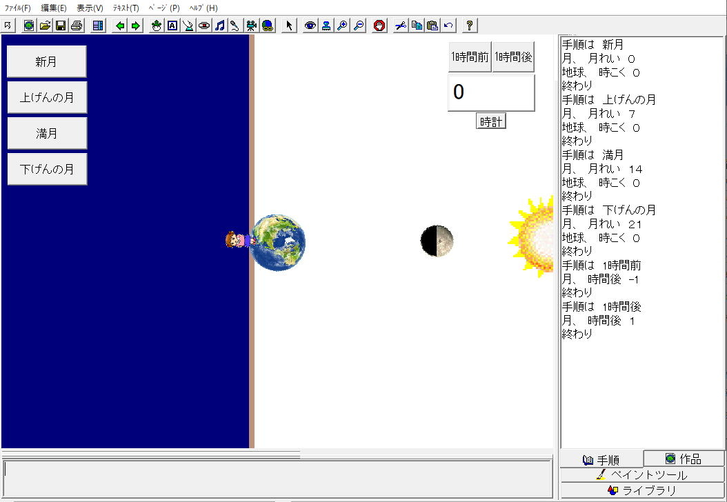 1.もとの月と地球を開く 2.手順にプログラミング 3.月と地球のシミュレーション |