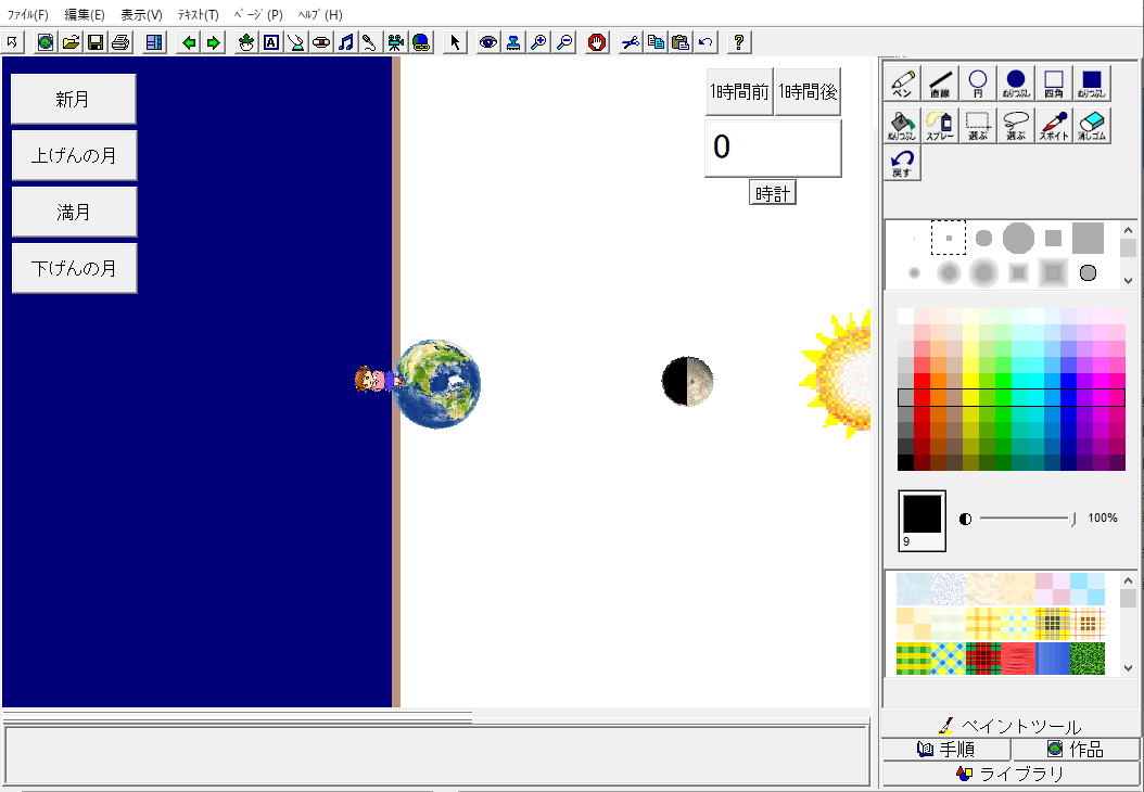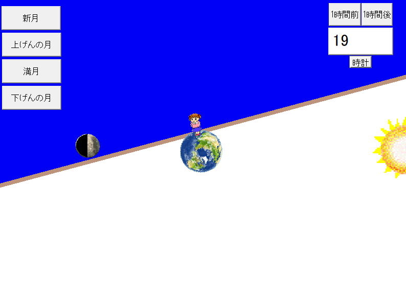 | 月と地球 月と地球の位置をシミュレーションしよう。 |