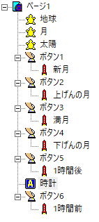 | <部品化> ここでは、月れい 、 時こく という命令を使っていますが、これらの命令は、カメの中の手順に書かれています。このようにすることで、カメがプログラムの部品のように使われています。カメの中の手順の完全に作ってから使うことで、プログラミングの効率が良くなり、まちがいをへらすことができます。 |